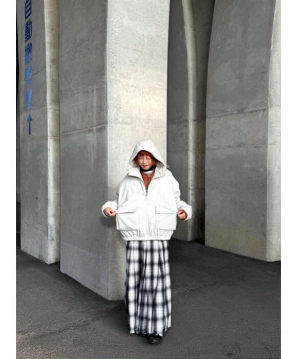 天氣漸漸轉涼是多層次穿搭的天下,寬版刺繡大學T裡面再穿上寬鬆的長袖襯衫,下身著異材質的皮革短褲,讓整體有層次不單調