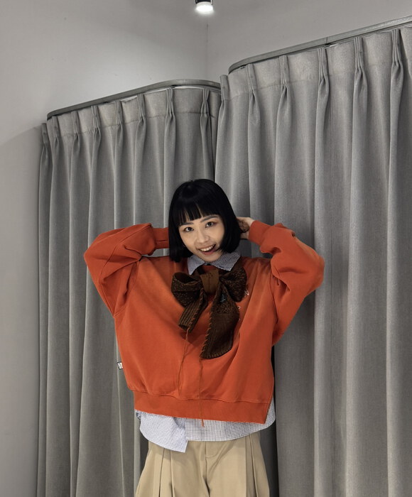 以暖橘色衛衣作為視覺亮點,搭配內層襯衫增加層次感,讓休閒中多一點細節。寬版卡其褲修飾比例,同時保有舒適與隨性氛圍,整體色調溫柔又耐看。