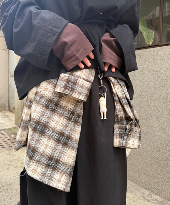 屬於秋冬的棕格紋,配上新買的貓咪吊飾,超會搭