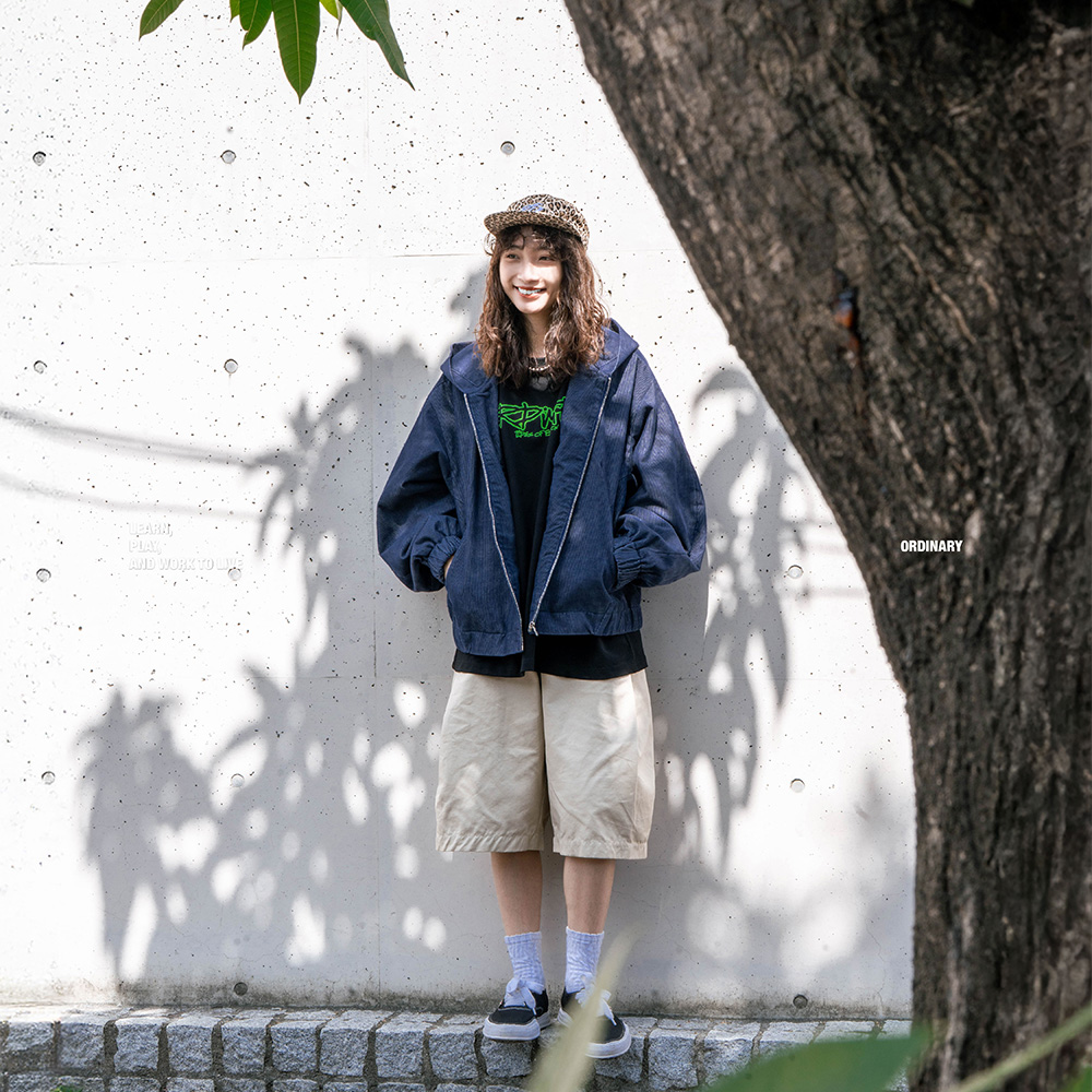 - 採用300克細緻燈芯絨布料,經水洗加工呈現自然褪色質感與柔軟觸感,展現復古隨性氛圍。