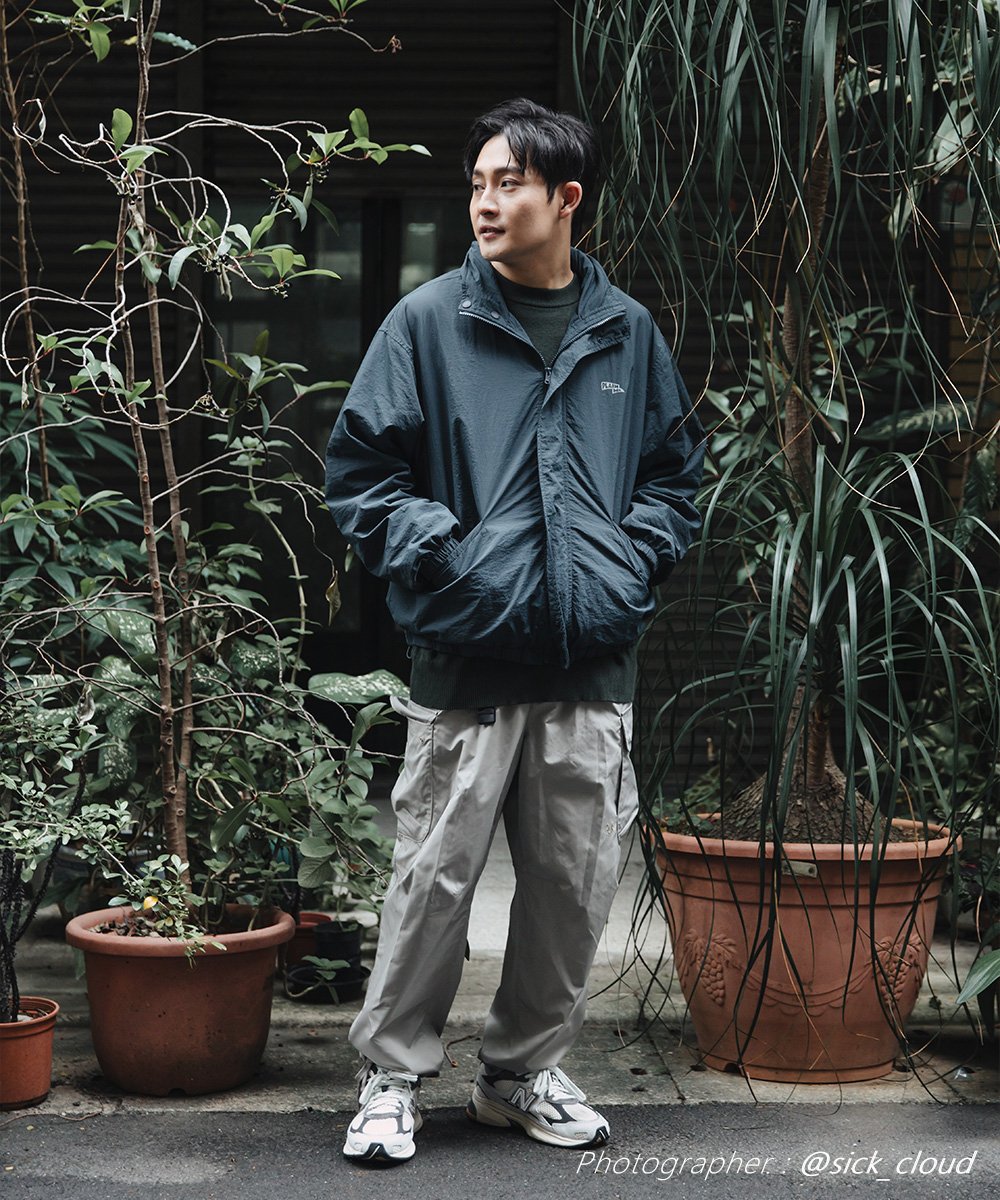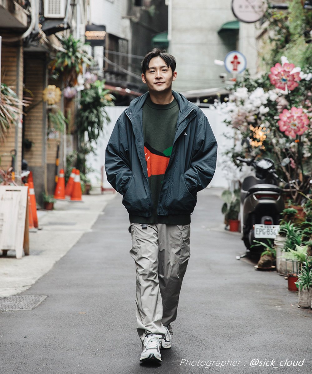 「我自己是選擇 L 號 穿出寬鬆的 P04 寬身感。防潑水 與抗撕裂 布料也讓我在騎車時很安心。它的『上掀式斜口袋』 有釦的設計很安心,放手機或錢包都不怕掉出。」